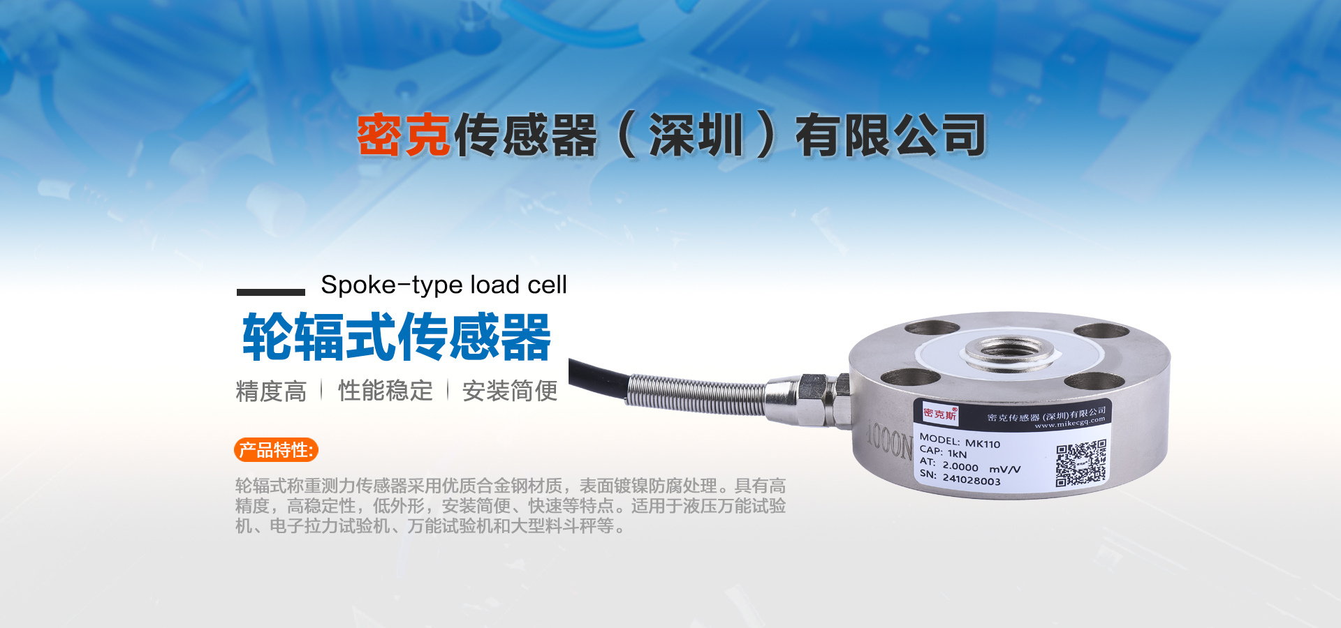 密克傳感器(深圳)有限公司主要生產(chǎn)的產(chǎn)品有測(cè)力傳感器、稱重傳感器、拉力傳感器、壓力傳感器、扭矩傳感器,多維力傳感器,電子引伸計(jì)等各類力學(xué)和稱重傳感器、及其配套儀器儀表和模塊附件的工廠。